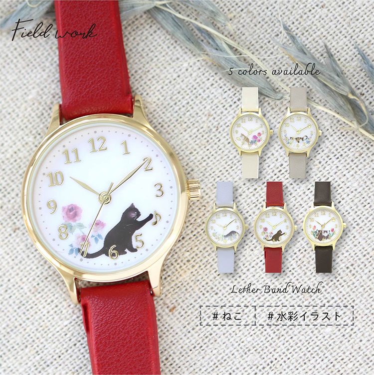 腕時計 レディース ミュレ ネコ 猫 ネコモチーフ 花 花柄 かわいい 可愛い 水彩風 動物 アニマル モフッテ mofute にゃんこ 猫様 通勤 通学 ビジネス 仕事 小さめ プチプラ 安い プレゼント クリスマス 子ども キッズ 10代 20代 30代 小物 雑貨 一年保証 フィールドワーク