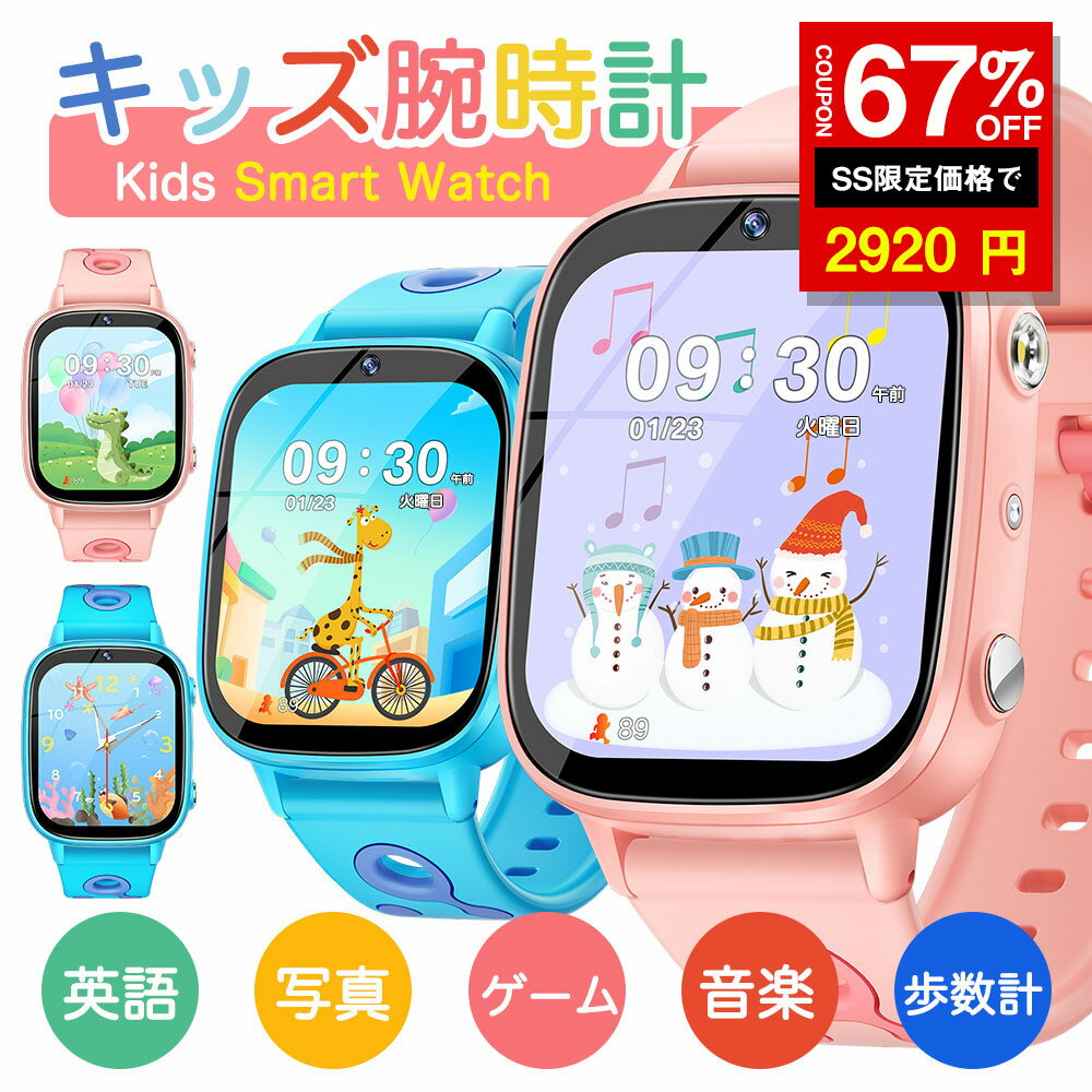\84%OFF★スーパーSALE限定/スマートウォッチ キッズ smart watch for kids 知育玩具 歩数計 健康管理 IP68防水 活動量計 腕時計 アラーム 心拍数測定 睡眠 血中酸素 電卓 ミニゲーム 文字盤変更 着信通知 3~12歳 大人気 男の子 女の子 入園入学祝い プレゼント