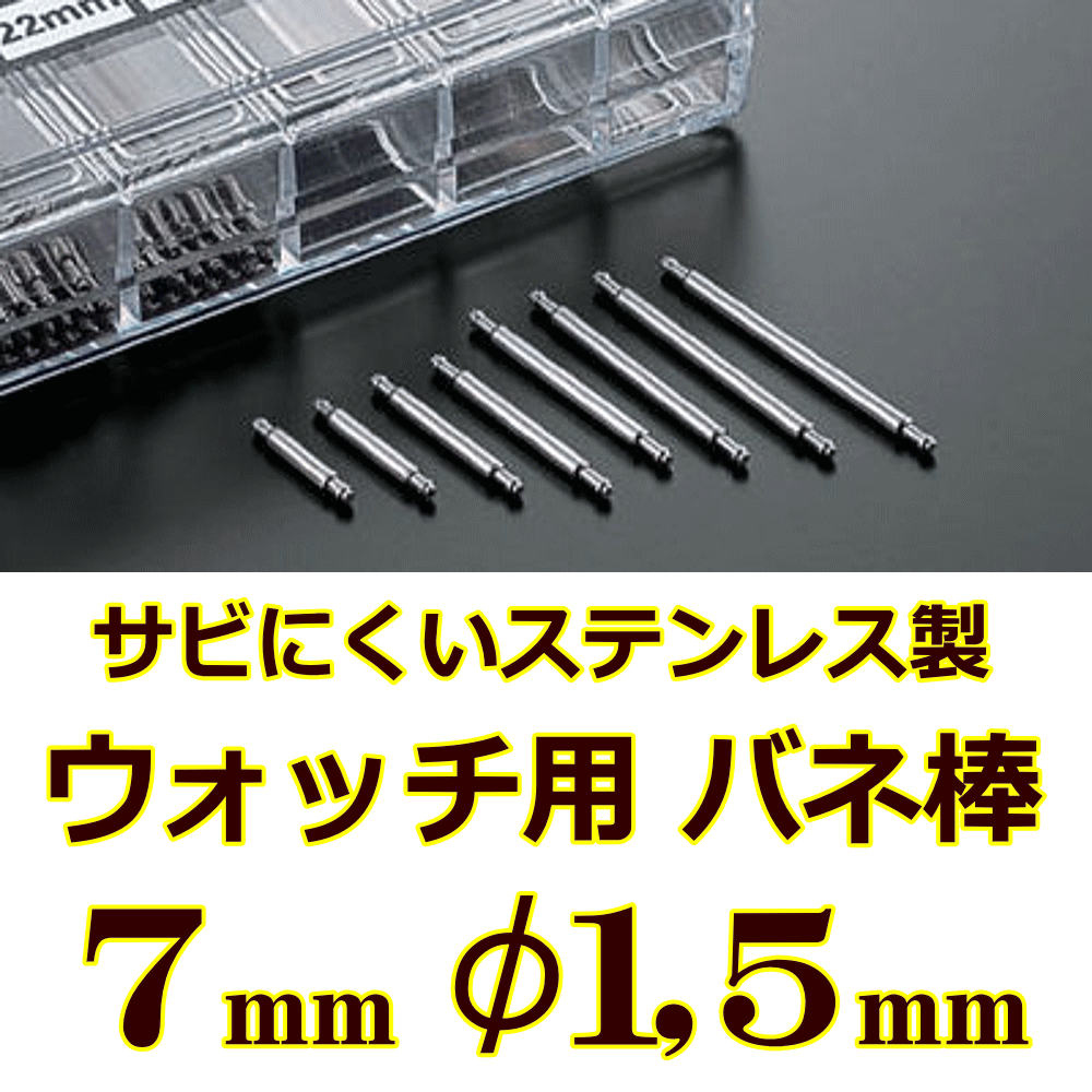 ウォッチ用 腕時計用 バネ棒販売 2本セット サビにくいステンレス製のバネ棒 ケース幅 ラグ幅:7mm:φ1,5mm用 一般的な腕時計におすすめなバネ棒サイズ ウォッチ用パーツ 腕時計用パーツ 革バンド用 皮バンド用 メタルバンド用 美錠用 バックル用 交換パーツ 交換部品