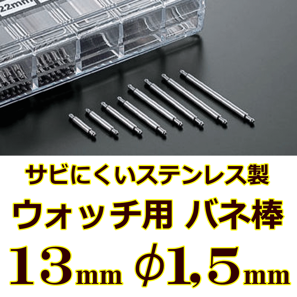 ウォッチ用 腕時計用 バネ棒販売 2本セット サビにくいステンレス製のバネ棒 ケース幅 ラグ幅:13mm:φ1,5mm用 一般的な腕時計におすすめなバネ棒サイズ ウォッチ用パーツ 腕時計用パーツ 革バンド用 皮バンド用 メタルバンド用 美錠用 バックル用 交換パーツ 交換部品
