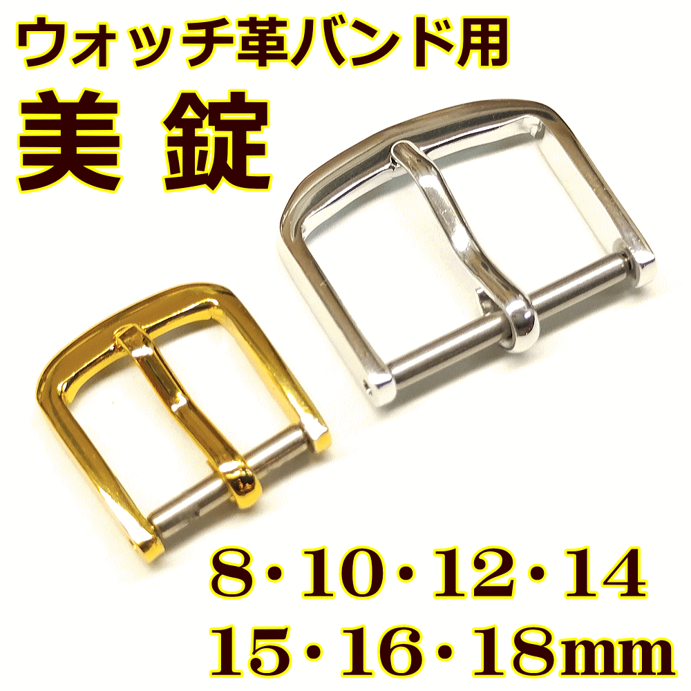ウォッチ用 腕時計用 革バンド用 皮バンド用 美錠 尾錠 留め具 留め金具 幅:8mm 10mm 12mm 14mm 15mm 16mm 18mm対応 カラー:シルバー ゴールド ウォッチ用パーツ 腕時計用パーツ 交換パーツ 交換部品[郵送商品:普通郵便][基本即日発送(日祝除く)]