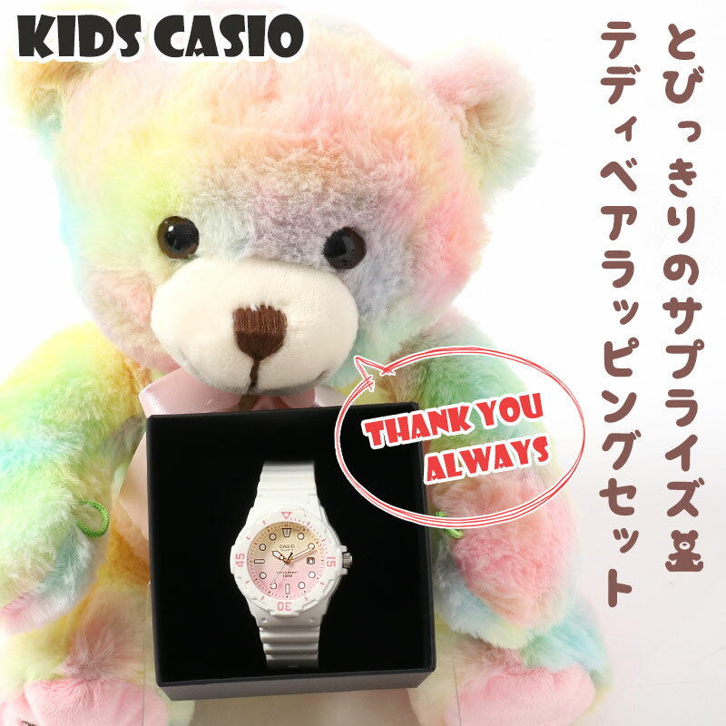 キッズカシオ テディベアラッピングセット1974年、機械式からクオーツ式へと切り替わる技術変革期に時計事業へ進出。1983年、カシオ計算機より「壊れない腕時計」としてG-SHOCK誕生。外殻から独立した内部機構とポリウレタン製の衝撃吸収材等によりアイスホッケーのパック代わりにしても壊れないほどの頑丈さを誇る。1984年 データバンクを発売多機能、高気圧防水、他に気圧計や水深測定器、電波時計、太陽電池等様々な先端技術を盛り込んだ製品が多数発表。腕時計の更なる可能性を追求し続け世界中で愛されるトップメーカーである。おしゃれキッズにピッタリなこのモデル。小学校低学年から高学年まで幅広く使用できます!誕生日プレゼントや入学祝にも喜ばれること間違いなし♪※こちらの商品は海外正規品(並行輸入品)の為、仕入れ先の国や時期により仕入れ値が異なりますため、国内正規品と値段が異なる場合もございます。予めご了承下さい。[ 商品ポイント ]POINT.1お子様の好きな色にあわせて選べる豊富なカラーラインナップ♪兄弟でお揃いはもちろん、親子でのペアウォッチにもとってもおすすめ◎POINT.2着けているのを忘れてしまうほどの軽さで着け心地抜群!小さくて軽いのにおもちゃっぽくならないのはカシオならでは。大人っぽいデザインで長く愛用いただく事が可能です♪POINT.3水に強い10気圧防水付きなので、アウトドアシーンや水遊びにもぴったり◎お子様にも安心してお使いいただけます。型番CASIOW-LRW-200H-1BCASIOW-LRW-200H-1ECASIOW-LRW-200H-2BCASIOW-LRW-200H-2ECASIOW-LRW-200H-4B2CASIOW-LRW-200H-4BCASIOW-LRW-200H-4E2CASIOW-LRW-200H-4ECASIOW-LRW-200H-7BCASIOW-LRW-200H-7E2CASIOW-LRW-200H-3CCASIOW-LRW-200H-4CCASIOW-LRW-200H-2E2CASIOW-LRW-200H-2CCASIOW-LRW-200H-4E3※2022/3/23 ラインナップ追加しました ケース材質:強化ウレタン樹脂サイズ約:縦39×横34mm重さ約:25gベルト材質:強化ウレタン樹脂腕回り:12cm?18.5cmムーブメントクォーツ(電池式)機能留め金:中留穴留め式ピンバックル風防素材:樹脂ガラスカレンダー機能(日付表示)回転ベゼル防水機能防水性:日常生活用強化防水(10気圧)付属品時計ギフトボックス保証書説明書※付属品に関して入荷時期により仕様、内容が一部異なる場合がございます。また、ブランドにより説明書兼保証書が付属する場合がございます。予めご了承をお願い致します。贈る相手 男の子 女の子 甥っ子 姪っ子 親せき 親戚 こども 子供 子ども 娘 息子 姉妹 兄弟 知り合い 姉 妹 兄 弟 小学生 小学校 低学年 高学年 中学年 中学生 中学校 1年生 2年生 3年生 4年生 5年生 6年生 5歳 6歳 7歳 8歳 9歳 10歳 11歳 12歳 13歳 14歳 15歳 この商品のお問い合わせ番号PPR-item-21111501メーカー希望小売価格はメーカーサイトに基づいて掲載しています
