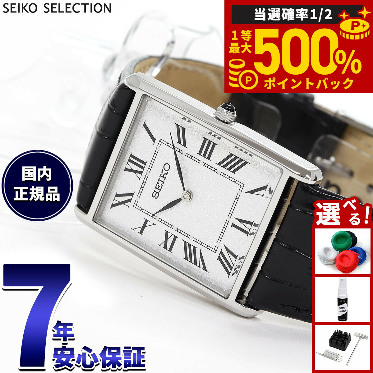 ≪デザインテーマ:My Favorite Vintage≫時代を超えて愛されるヴィンテージスタイルの時計を目指して、人気セレクトシップ「ナノ・ユニバース」とコラボレーションをしたモデルです。人気の角型モデルに待望のメンズサイズが登場。大振りなケースを採用しており、コーディネートのポイントになる1本です。レザーストラップ色・ダイヤルカラー等を「ナノ・ユニバース」がセレクト。ダイヤルのレイアウトはレディスモデルとペアで楽しめる雰囲気を残しながら、メンズサイズとしてバランスが良い略字やミニレールの太さにこだわりました。ダイヤルは、金属ならではの質感に、ミニレール上に配置した”もみつけ”がアクセントになった、高級感ある仕上がりになっております。ブラックのレザーバンドは、ハーフマットの型押しのカーフを採用し、男性が身に着けやすい質感になっております。商品名セイコー セレクション SEIKO SELECTION ショップ専用 流通限定モデル 腕時計 メンズ ナノ ユニバース nano universe SSEH019商品番号SSEH019ブランドセイコー セレクション SEIKO SELECTIONムーブメントクオーツ キャリバー:4N30電池寿命:約3年精度:平均月差±15秒日常生活用防水耐磁:ありバンドアジャスト:美錠MOVEMENT JAPANCASED IN CHINA風防素材ハードレックスケース素材胴部ステンレススチール 裏ぶた部ステンレススチールケースサイズ38.2×27.9mmケース厚6.4mmバンド素材牛皮革バンド留金タイプ美錠バンド幅23mm文字盤カラーシルバー保証期間メーカー3年間保証付属保証書 / 専用BOX■取扱説明書電子化のお知らせペーパーレス化の一環として、取扱説明書が電子化されました。詳細は付属の保証書をご確認ください。その他のサービスギフトラッピング対応可能 ※別途ご注文くださいセイコー セレクション SEIKO SELECTION ショップ専用 流通限定モデル 腕時計 メンズナノ ユニバース nano universe SSEH019 ≪デザインテーマ:My Favorite Vintage≫時代を超えて愛されるヴィンテージスタイルの時計を目指して、人気セレクトシップ「ナノ・ユニバース」とコラボレーションをしたモデルです。人気の角型モデルに待望のメンズサイズが登場。大振りなケースを採用しており、コーディネートのポイントになる1本です。レザーストラップ色・ダイヤルカラー等を「ナノ・ユニバース」がセレクト。ダイヤルのレイアウトはレディスモデルとペアで楽しめる雰囲気を残しながら、メンズサイズとしてバランスが良い略字やミニレールの太さにこだわりました。ダイヤルは、金属ならではの質感に、ミニレール上に配置した”もみつけ”がアクセントになった、高級感ある仕上がりになっております。ブラックのレザーバンドは、ハーフマットの型押しのカーフを採用し、男性が身に着けやすい質感になっております。