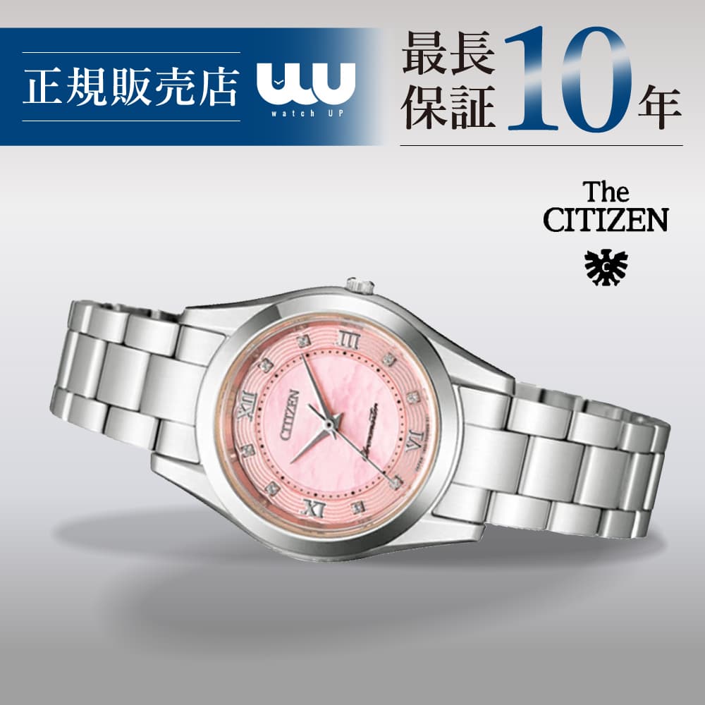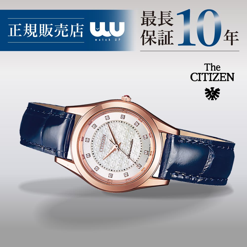 信頼に応えられる存在であること。 時代を超えた美しさを宿していること。 手にするたび、豊かな気持ちになれること。 ジャパンブランドの揺るぎない技術と誇り、そして、繊細な美意識を宿して。 本物の価値を知る女性に。The CITIZEN ザ・シチズンは、「正確なときを刻み続けること。時刻を見やすく伝えること。その使命を長く維持すること。」をテーマに時計の本質を追求したシチズンブランドの最高峰です。 高品質で上品なデザインは、一生付き合うことのできるもの。 身に着けるたび、時を重ねるほどにその良さを実感できる時計です。 世界最高レベルの高精度ムーブメント 年差±5秒という卓越した精度を誇ります。 文字板上のChronomaster(クロノマスター)表記と裏蓋のイーグルマークは高精度の証です。 最高品質にふさわしいケース・バンドの仕上げ ケースにはザラツ研磨を施し歪みのない鏡のような深い輝きが生み出されています。 さらに、シチズン独自の表面硬化技術デュラテクト加工が施され、長く使ってもキズがつきにくく美しい輝きを保ちます。 ひとつひとつ丁寧に仕上げた高品質なパーツの数々がシンプルなデザインの美しさを際立てています。 ワニ革バンドには三つ折れプッシュタイプの中留を採用し、着脱が容易なスタイルになっています。 高い視認性 見やすさにこだわり屈折率の極めて少ないサファイアガラスを厳選しています。 さらに、99%クラリティコーティングを施すことで、どんな角度からでも時刻が読み取りやすい視認性を実現しています。 最上のアフターサービス 購入後、オーナーズクラブにご登録いただくと、10年間の保証・定期点検や長期修理対応が受けられます。 オーナー様専用のオーナーズサイト、オーナーズデスクを開設しております。 金属と白蝶貝をあわせた美しい文字板デザイン 文字板中央部白蝶貝には、「梅の花」をモチーフにした繊細な彫刻を施しています。 白蝶貝彫刻だからこそできる独特の美しい表現です。