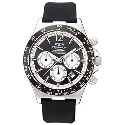 【テクノス】 TECHNOS 腕時計 メンズ クロノグラフ ブラック文字盤 シリコンベルト 10気圧防水 TP0801TB
