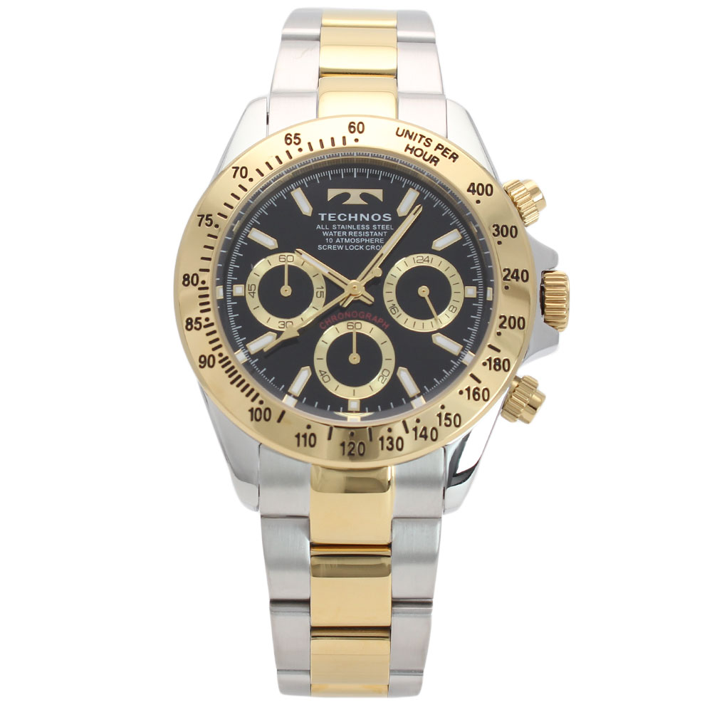 特徴 駆動方式 クオーツ 機能 クロノグラフ 防水 10気圧防水 サイズ 本体サイズ 縦×横×厚:約47.2×42.5×11.6mm 重さ 約134g バンドサイズ 最小〜最大:約14〜19cm 素材 風防素材 ミネラルガラス ケース素材 ステンレス ケースカラー シルバー ベゼルカラー ゴールド 文字盤カラー ブラック バンド素材 ステンレス バンドカラー シルバー/ゴールド 備考 マニュアル 取り扱い説明はQRコード案内書が付属されています。 商品ケース テクノス製ボックス 保証書 メーカー1年保証 備考 仕入情報 国内正規代理店仕入れ(新品)1900年、時計技術者であったメルヒオール・グンツィンガーがスイスのジェラ山岳地方のウェルシェンロールに時計工房を開設したのが始まり。 テクノスとはギリシャ語の「テクネー」(技術)にちなんで名付けられたもので、その名の通り技術を基本理念とした時計造りで数々の傑作を世に送り出してきた。 その伝統は着実に引き継がれ今に至っている。