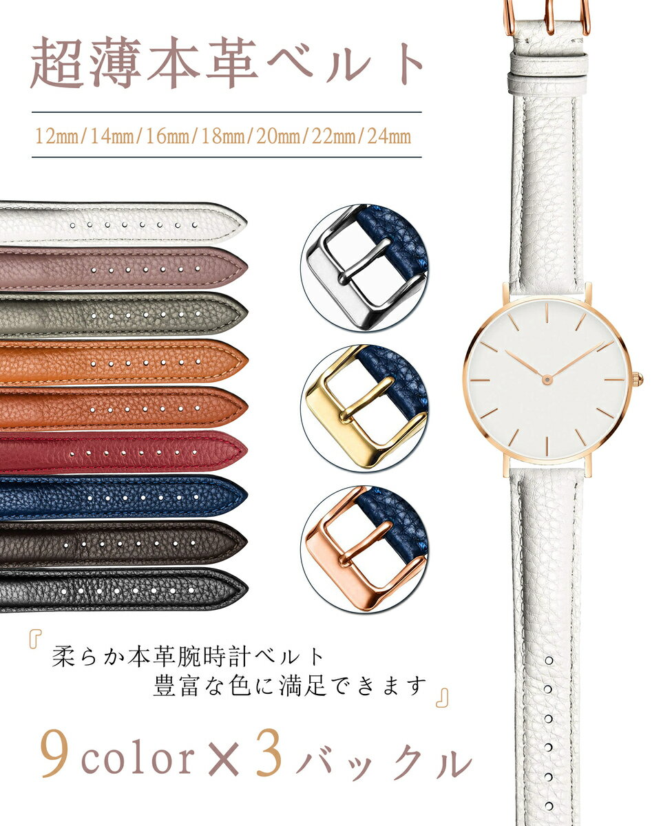 時計ベルト 牛革 無地 薄め バネ棒・交換工具付 時計バンド 12mm 14mm 16mm 18mm 19mm 20mm 21mm 22mm メンズ レディース