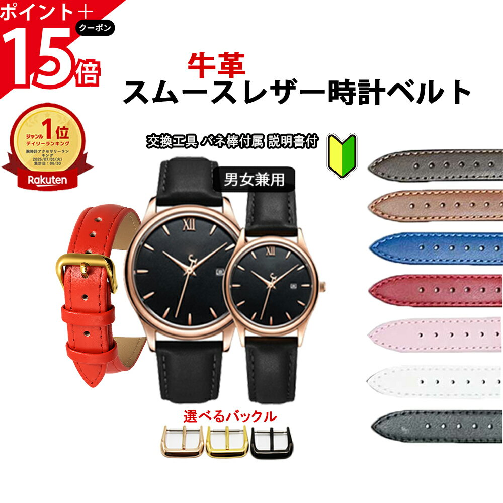 【ポイント15倍+クーポン12/4(木)20:00~】 腕時計ベルト 牛革 無地 スムースレザー バンド レディース メンズ 女性用 男性用 交換用 時計ベルト 8mm 10mm 12mm 14mm 16mm 18mm 20mm 22mm 24mm バネ棒付 交換工具 付属 腕時計バンド Watch band 1000円ポッキリ 男女兼用