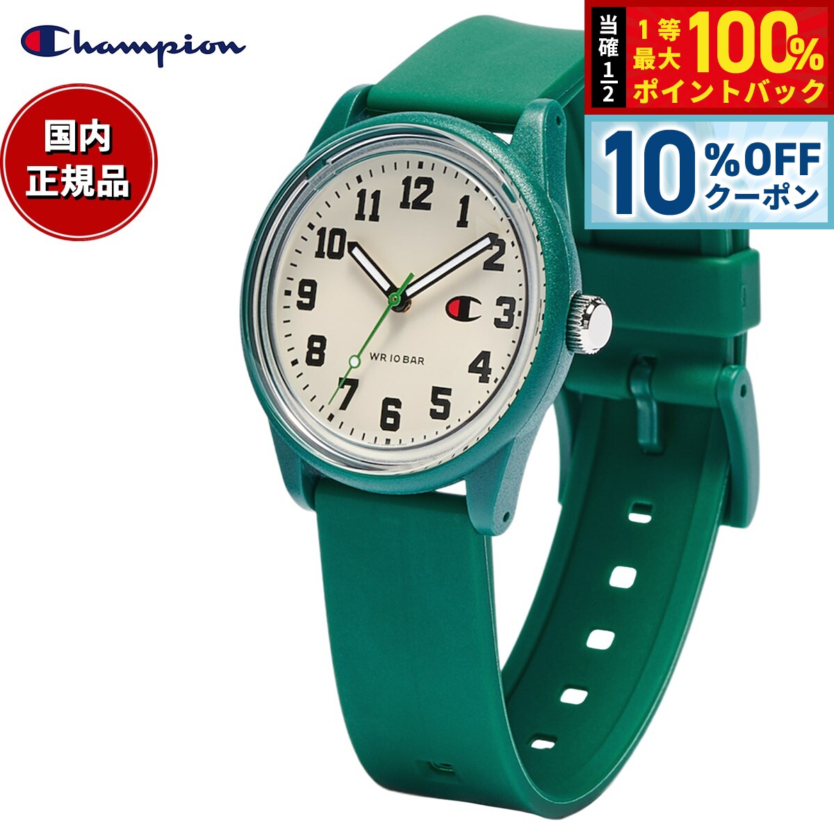 ベルトサイズ調節はコチラから【 表示価格から10%off 腕時計 クーポン配布中 】モデル説明・装飾をすべてそぎ落とし、シンプルなデザインのモデル。・街からアウトドアまでどのシーンにも着用可能な10気圧防水と、着けているストレスを感じさせない軽量な光発電ウオッチ。・文字板のインデックスは、バスケットのユニフォームなどに使われている番号の書体をイメージし、オリジナルで書き起こした数字がスポーティさを演出。3時位置にはさりげなくCマークロゴを配しています。・インデックスの数字や文字板のカラーも少しクラシカルな配色で、渋めの色合いに仕上げています。・カラーリングはチャンピオンのスウェットなどで使われている定番カラーにアクセントカラーを加えた6色のラインナップ。BOYSサイズでお子様から女性、男性まで幅広いターゲットに提案したい時計です。精度月差±20秒ケースABS樹脂横幅36.0mm 厚み12.0mm防水10気圧防水ガラスアクリル樹脂ガラスバンドウレタン樹脂美錠特徴ソーラー 光発電機能フル充電時約3.5ヶ月可動クイックスタート機能過充電防止充電警告機能保証:付属品メーカー3年間保証専用BOX付きベルトサイズ調節はコチラから