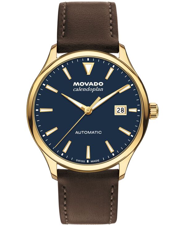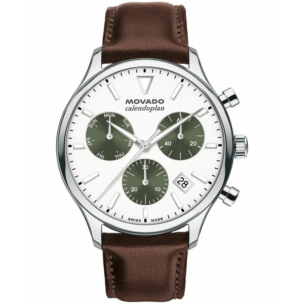 モバド メンズ アクセサリー 腕時計 レザー Movado Men's Calendoplan Swiss Automatic Chocolate Leather Watch 40mm Brown ブラウン
