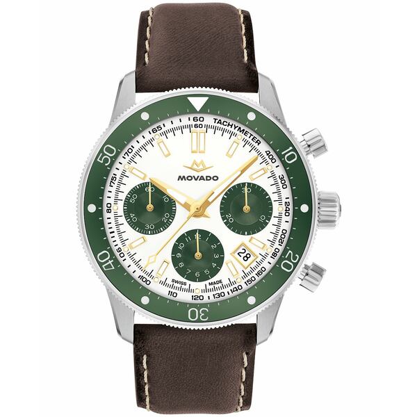 モバド メンズ アクセサリー 腕時計 レザー Movado Men's Super Sub Sea Alta Swiss Automatic-Chronograph Chocolate Leather Watch 43mm Brown ブラウン
