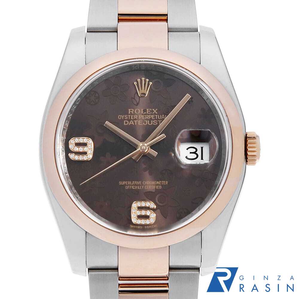 【ローン60回払い特別低金利】ロレックス デイトジャスト 6/9アラビアダイヤ 116201 チョコレートブラウン フラワーモチーフ 3列 オイスターブレス ランダム番 メンズ【中古】【腕時計】【送料無料】【返品OK】
