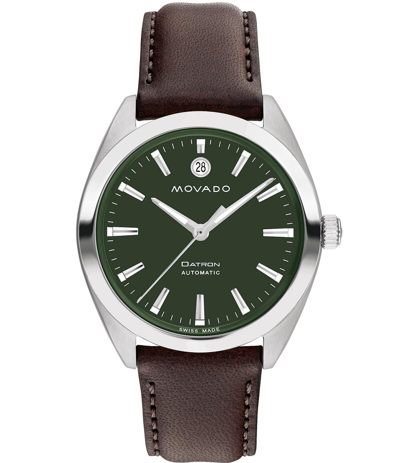 モバド レディース アクセサリー 腕時計 レザー Movado Men's Datron Automatic Chocolate Leather Strap Watch Chocolate チョコレート