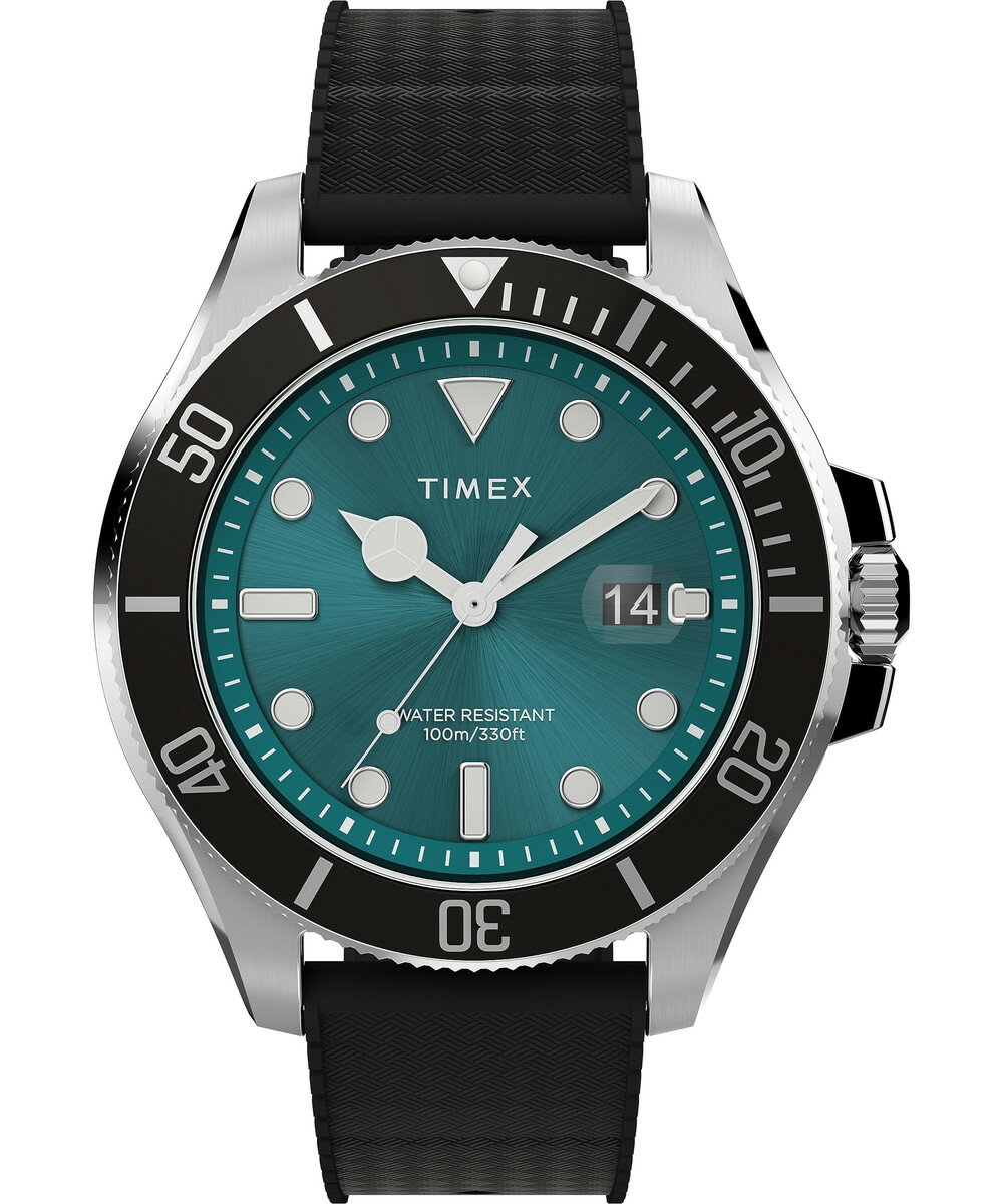 腕時計 タイメックス メンズ Timex Men's Deep Water 43mm Watch - Black Strap Green Dial Silver-Tone Case腕時計 タイメックス メンズ