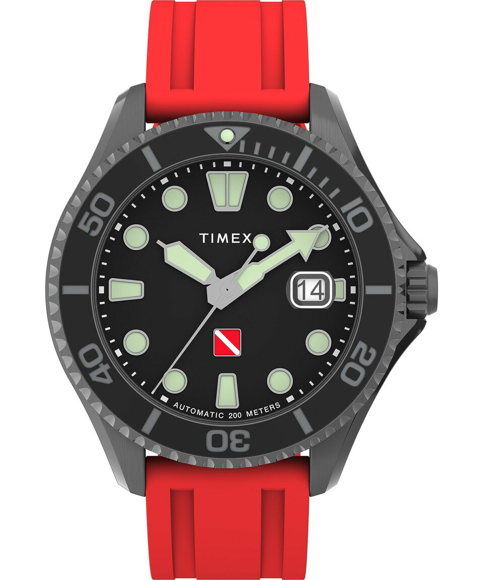 Timex メンズ Deep Water 44mm 腕時計 レッドストラップ ブラックダイアル ガンメタルケース