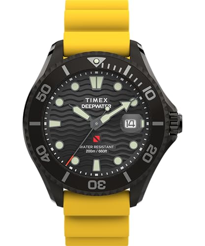 Timex メンズ Deep Water Meridian 44mm 腕時計 イエローストラップ ブラックダイアル ガンメタルケース
