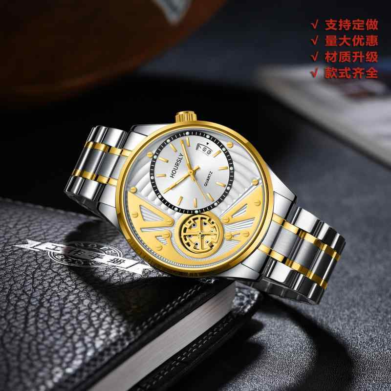 腕時計 メンズ 男性用 日付表示 防水 クォーツ アナログ ゴールド 金 ステンレス バンド 白 黒 青 緑文字盤 カジュアル
