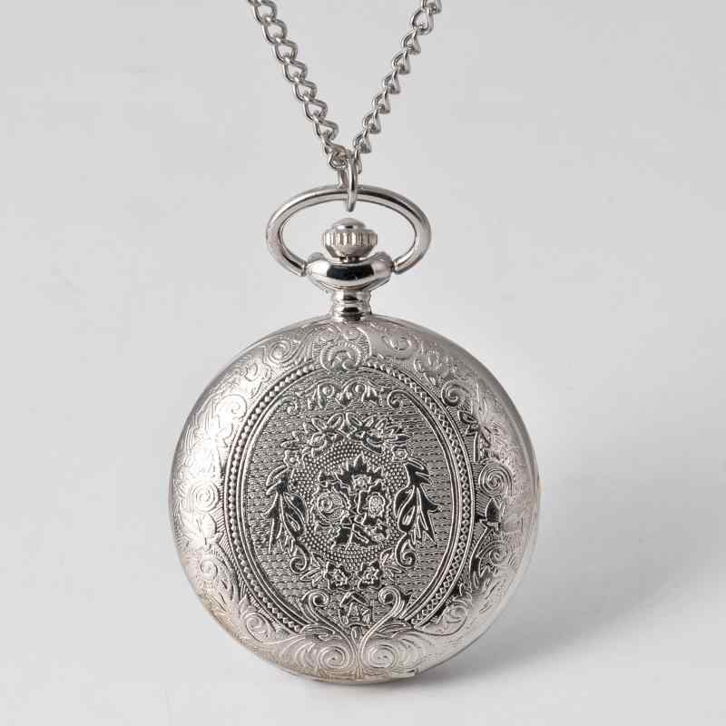 懐中時計 大型 シルバー クォーツ 花柄 シールドデザイン アンティーク調 レトロ クラシック エレガント 上品 高級感 合金製 プラスチック風防 コレクション 普段使い ファッション小物