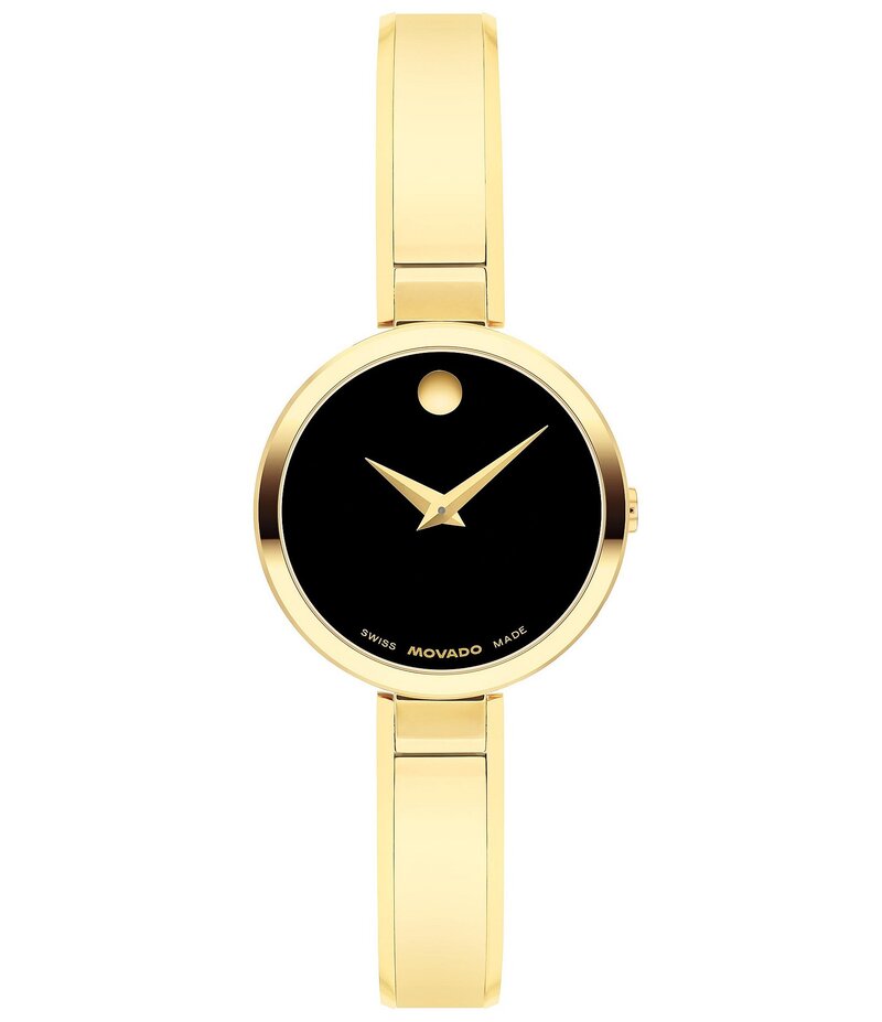 モバド レディース アクセサリー 腕時計 Tシャツ Movado Women's Museum Bangle Round Swiss Quartz Light Yellow Steel Watch 21.50mm Gold-tone ゴールド