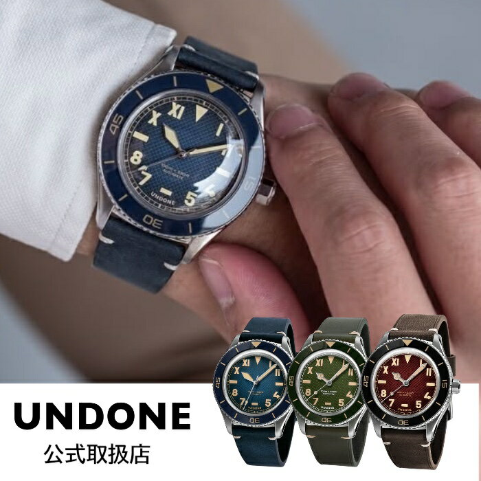 BCP-CAL-GRN|BCP-CAL-BLU|BCP-CAL-UME【ブランドについて】UNDONE(アンダーン)は、2014年に香港で誕生した新進気鋭の時計ブランドです。クラシックなミリタリーテイストや、レトロなクロノグラフスタイルに現代的なエッセンスを加え、ユニークかつ洗練されたコレクションを展開。高品質な素材と丁寧な仕上げにより、ファッション性と実用性を兼ね備えたタイムピースとして、世界中で注目を集めています。【商品説明】クラシカルな佇まいと、冒険心を刺激するカラーの“CALI”モデル。UNDONEの「Basecamp Cali Blue」は、視認性と美しさを兼ね備えたカリフォルニアダイヤルを採用した自動巻き腕時計。ローマ数字とアラビア数字を組み合わせた個性的なインデックスに、深みのあるカラーダイヤルが映えるデザインです。ケースには耐久性に優れた316Lステンレススチール、風防には衝撃に強いLEXAN?ポリカーボネートを使用。インデックスと針には蓄光塗料が施され、昼夜を問わず高い視認性を確保します。クラシックな趣とツールウォッチとしての実用性を融合させた、まさに現代の“ヴィンテージミリタリー”ウォッチです。【スペック】防水機能:10ATMケース幅:40mmベルト幅:20mmケース素材:ステンレススチールバンド素材:レザー風防:LEXAN ポリカーボネートムーヴメント:Japanese TMI NH35A Automatic Winding Mechanism自動巻き機械式 (21,600振動/時) / 平均日差 ±20~40秒 (常温時)保証期間:1年間(ムーブメント・電子パーツ対象)※ベルト・電池・ガラス破損は対象外です。【発送・在庫】平日13時までのご注文確定で最短即日発送(土日祝は即日又は翌日)※在庫は実店舗と共有のため、完売時はメールでご案内いたします。【正規品・安心サポート】当店は各ブランドの正規取扱店です。実店舗を展開し、正規品+保証書付きでお届け。アフターサポートもご相談ください。【こんなシーンでオススメ】●特別な記念日やイベントに結婚記念日 誕生日 記念日 クリスマス クリスマスプレゼント クリスマスギフト Xmas成人式 成人祝い 卒業式 入学式 同窓会 結婚式 2次会 パーティー お呼ばれ デート 食事会●自分へのご褒美やモチベーションアップ自分買い ご褒美仕事 仕事用 ビジネス ビジネス用 社会人 新社会人 スーツ●日頃の感謝を伝える贈り物として父の日 父の日プレゼント 父の日ギフト お返し母の日 母の日プレゼント 母の日ギフト ホワイトデー退職 祝い 記念品 入社祝い 退職祝い 送別会●学校行事や普段使いのおしゃれに参観日 保護者会 学校 行事 遠足 旅行 修学旅行お出かけ おでかけ【こんな方にオススメ】●大切なパートナーや家族へ恋人 彼氏 夫 旦那さん ご主人 父親 父 親 パパ お父さん 父さん息子 子供 孫 甥 甥っ子 兄弟 兄 弟おじいちゃん 義父 義父さん お義父さん学生 中学生 高校生 大学生 学校●親しい友人や同僚へ男友達 友達 友人 知人 同僚●あらゆる年代の男性へメンズ 男性 男性用 男子 紳士10代 20代 30代 40代 50代 60代 70代 還暦●ライフスタイルや好みに合わせて学生 学生用 学校用カッコいい おすすめ 人気 おしゃれ お洒落金アレ 金属アレルギー