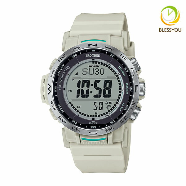 ケースサイズ(縦×横×厚さ)51.2 × 44.6 × 13 mm 質量45 g ケース・ベゼル材質:樹脂(バイオマス)/ステンレススチール 樹脂バンド(バイオマスプラスチック) 10気圧防水 耐低温仕様(−10℃) 電波時計 日本・北米・ヨーロッパ・中国地域対応 MULTIBAND6 タフソーラー(ソーラー充電システム) センサー機能 高度計測機能 計測間隔設定機能 気圧計測機能 方位計測機能 磁気偏角補正機能 方位補正機能 温度計測機能(計測範囲:−10〜60℃、0.1℃単位) 無機ガラス バンド装着可能サイズ145〜215mm ワールドタイム:世界48都市の時刻表示日の出・日の入時刻表示 ストップウオッチ タイマー 時刻アラーム5本(1本のみスヌーズ機能付き)・時報 LEDバックライト(フルオートライト、スーパーイルミネーター、残照機能、残照時間切替(1.5秒/3秒)付き) フルオートカレンダー 操作音ON/OFF切替機能 パワーセービング機能 バッテリーインジケーター表示 12/24時間制表示切替 電波受信機能:自動受信<日本><北米地域><ヨーロッパ地域><中国> ※ 高度計は気圧変化を高度に変換する相対高度計です。気圧が気象条件により変化すると、計測値の高度も変化します。 ※ 外気温を計測するときは、時計を腕から外して、体温、汗(水滴)、直射日光などの影響を受けないようにしてください。プロトレック 電波ソーラー デジタル 腕時計 正規品 CASIO PRO TREK 2024年5月 アウトドアウォッチ 気圧計 高度計 温度計 方位計 トリプルセンサー バロメーター アルチメーター コンパス ワンプッシュ計測できる大型ボタン 押しやすい prw35