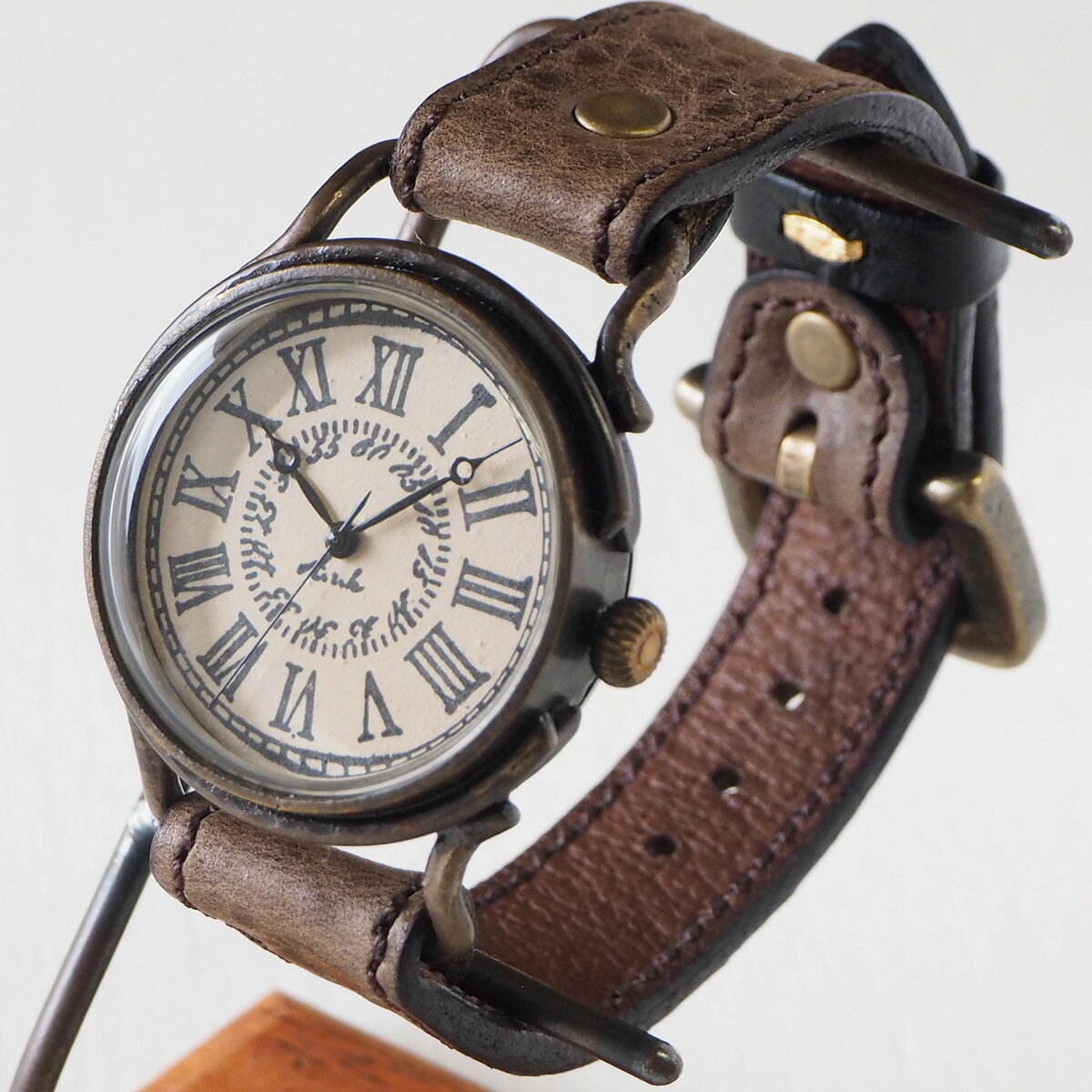 ARKRAFT(アークラフト)手作り腕時計“Marvin Large” ローマ数字 プレミアムストラップ [AR-C-015-RO] 時計作家 新木秀和 ハンドメイド ウォッチ ハンドメイド腕時計 手作り時計 本革ベルト 手描き スタンプ 真鍮 クオーツ アナログ 日本製 国産