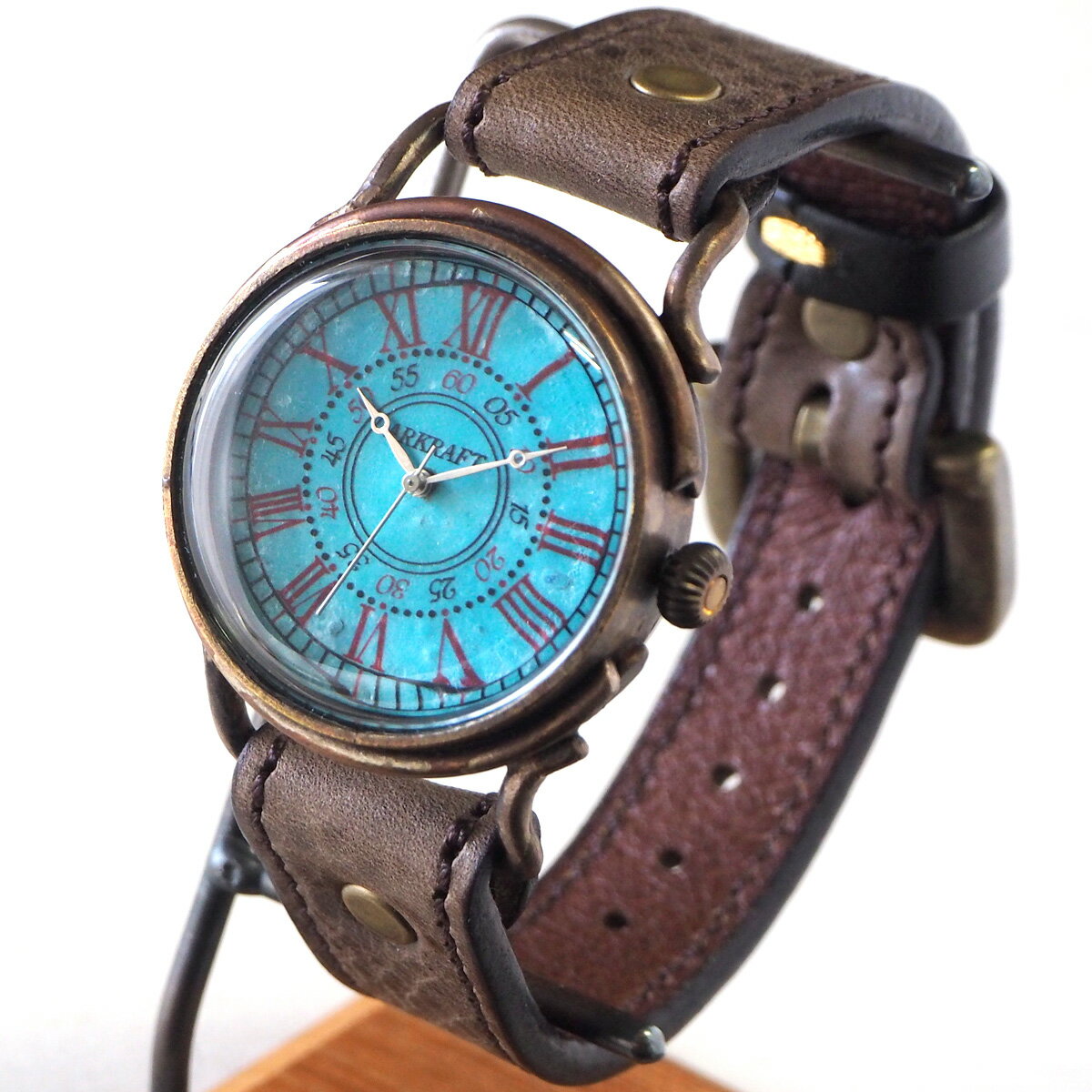 ARKRAFT(アークラフト)手作り腕時計“Addy Large” ローマ数字 プレミアムストラップ [AR-C-016-RO] 時計作家 新木秀和 ハンドメイド ウォッチ ハンドメイド腕時計 手作り時計 本革ベルト ターコイズブルー 青 ブルー クオーツ アナログ 日本製 国産