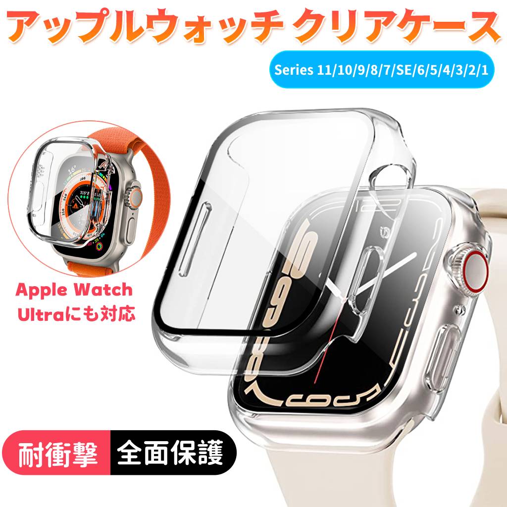 アップルウォッチ ケース 保護 カバー 透明 Apple Watch Ultra 11 10 9 8 7 SE 6 5 4 3 2 1 49mm 46mm 45mm 44mm 42mm 41mm 40mm 38mm 耐衝撃 全面保護 保護ケース クリア ブルーライトカット ガラスフィルム 装着簡単 超薄型 互換品 動画あり