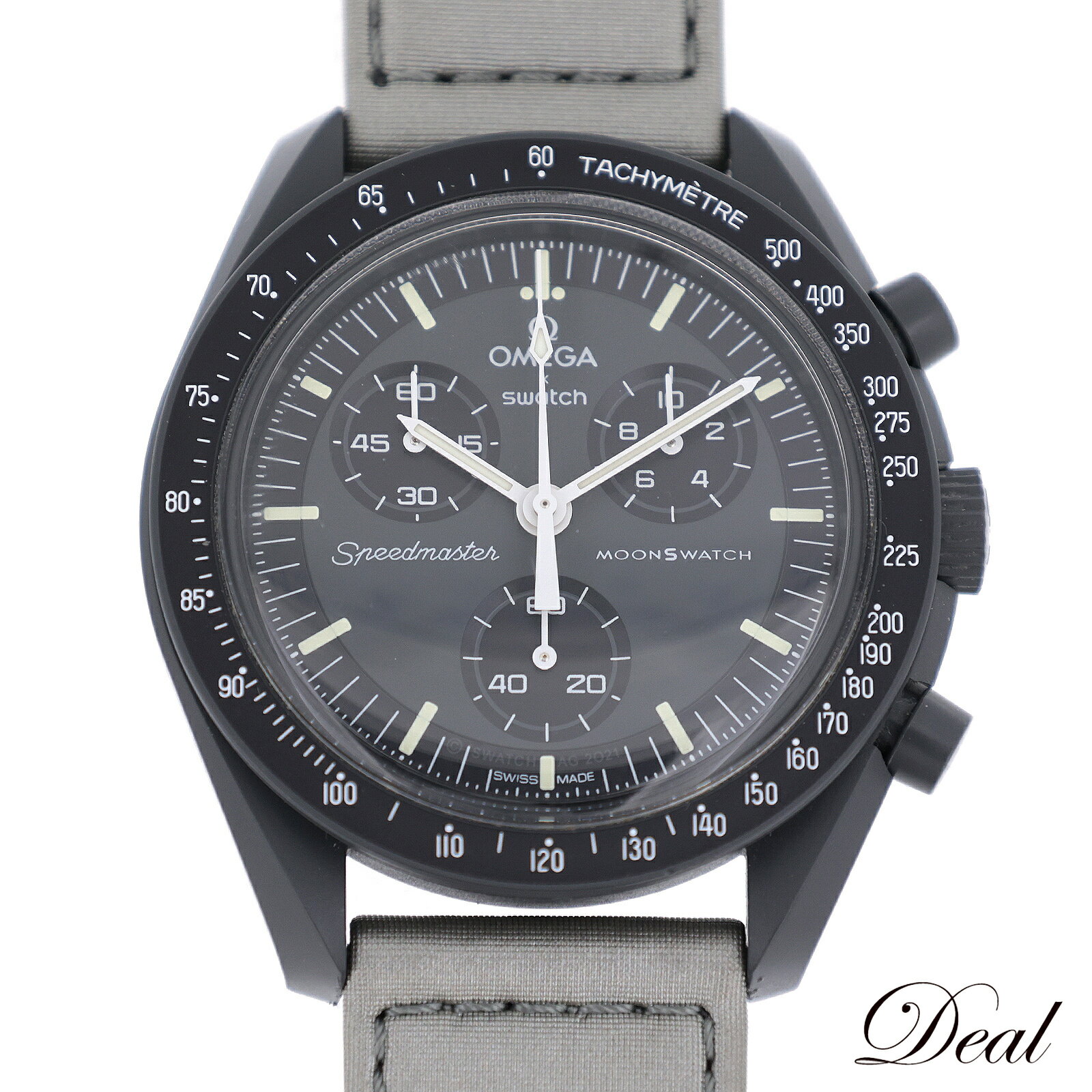 【未使用 展示品】オメガ OMEGA スウォッチ Swatch ミッション トゥ マーキュリー MISSION TO MERCURY スピードマスター ムーンスウォッチ クロノグラフ クォーツ 腕時計 ナイロン バイオセラミック ディープグレー メタリックグレー ブラック SO33A100 箱付