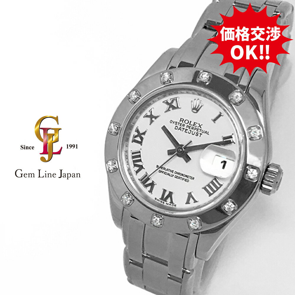 【中古】ロレックス デイトジャスト パールマスター 80319 Z番 ホワイト ローマ 12P純正ダイヤベゼル WG無垢 レディース 自動巻 時計
