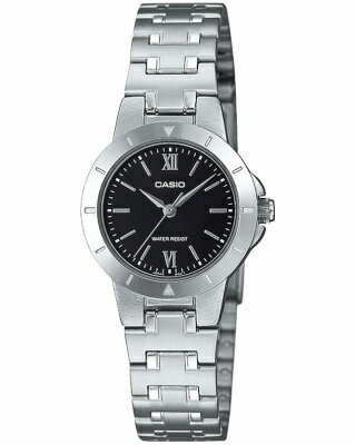 カシオ 日常生活防水 レディース アナログ 腕時計 日付 曜日 カレンダー シルバー 銀 (SD15AUP-405BKBK) 見やすい ローマ数字 ブラック 黒 革ベルト レザー 革バンド 海外限定 CASIO LADYS ANALOG おしゃれな ドレスウォッチ 時計