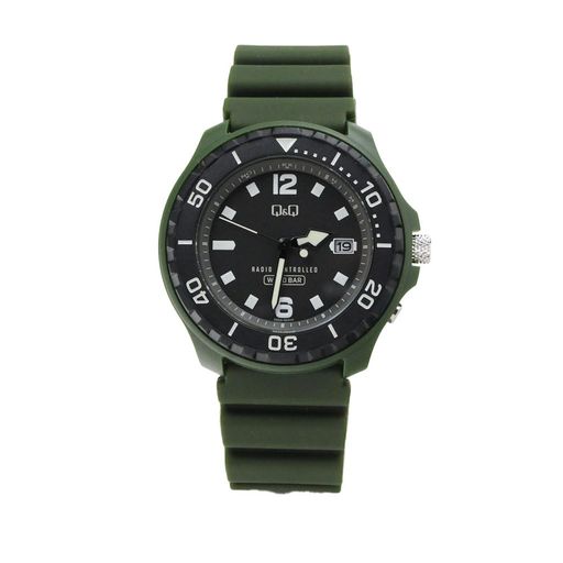 [シチズンQ&Q]腕時計アナログ電波ソーラー防水日付ウレタンバンドD02A-004VKメンズカーキ