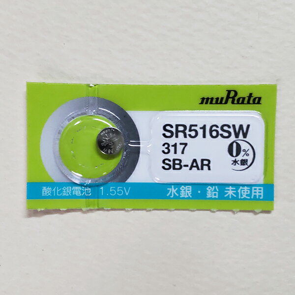 ムラタ酸化銀電池「SR516SW」 直径5.8mm 厚み1.6mm ムラタ製の腕時計用ボタン電池です。 時計の電池交換にどうぞ。 1個単位と5個単位の販売をしており、同一種類を5個単位のほうがお値段がお得になっております。 ここは1個単位の販売ページです。 5個単位は「こちら」からお買い求め下さい。