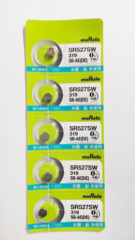 ムラタ酸化銀電池「SR527SW」 直径5.8mm 厚み2.7mm ムラタ製の腕時計用ボタン電池です。 時計の電池交換にどうぞ。 1個単位と5個単位の販売をしており、同一種類を5個単位のほうがお値段がお得になっております。 画像は5個パックのものですが、1個単位の場合ここから切り分けてお送りします。 ここは5個単位の販売ページです。 1個単位は「こちら」からお買い求め下さい。