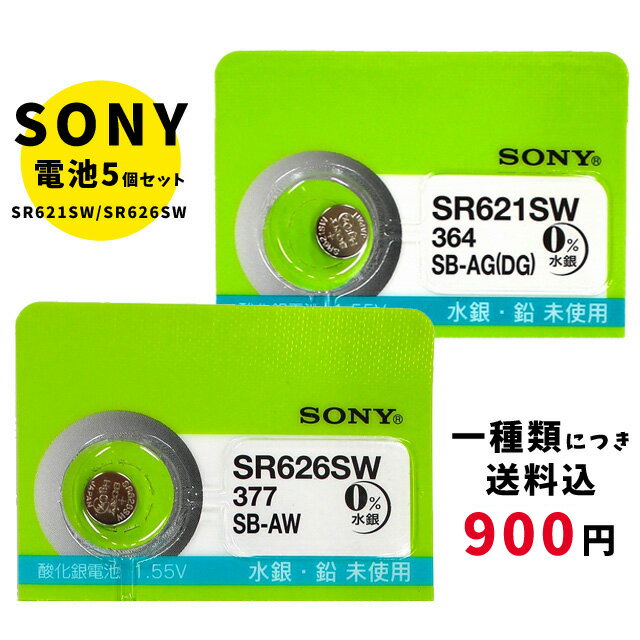 【5%OFFクーポン 12月2日(火)9:59迄】【メール便のため日時指定・代引き不可】SONY/ムラタ 純正時計用無水銀電池 SR621SW|SR626SW 5個セット ボタン電池 酸化銀電池 腕時計用 【一種類につき送料税込900円!】