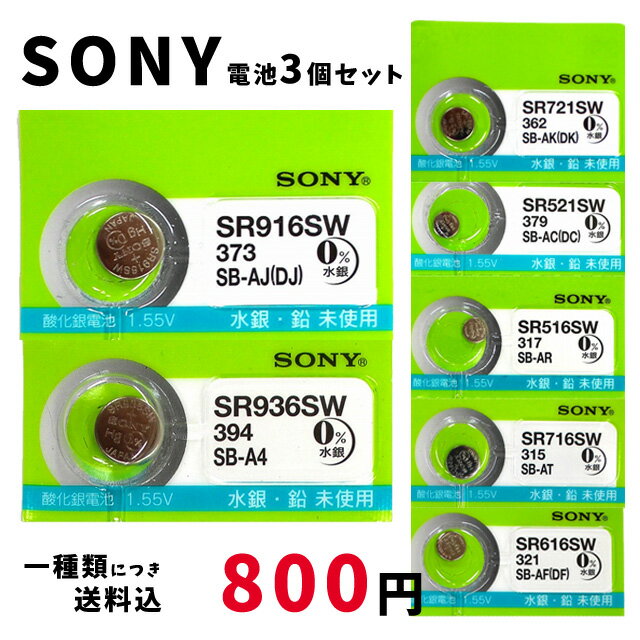 【5%OFFクーポン 12月2日(火)9:59迄】【メール便のため日時指定・代引き不可】SONY/ムラタ 純正時計用無水銀電池 SR516SW|SR521SW|SR616SW|SR716SW|SR721SW|SR916SW|SR936SW 3個セット ボタン電池 酸化銀電池 腕時計用 【一種類につき送料税込800円!】