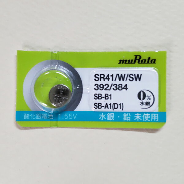 ムラタ酸化銀電池「SR41 W / SW」 直径7.9mm 厚み3.6mm ※SR41には「SW」と「W」の2種類がありますが、この電池で共通となりました。 ムラタ製の腕時計用ボタン電池です。 時計の電池交換にどうぞ。 1個単位と5個単位の販売をしており、同一種類を5個単位のほうがお値段がお得になっております。 ここは1個単位の販売ページです。 5個単位は「こちら」からお買い求め下さい。