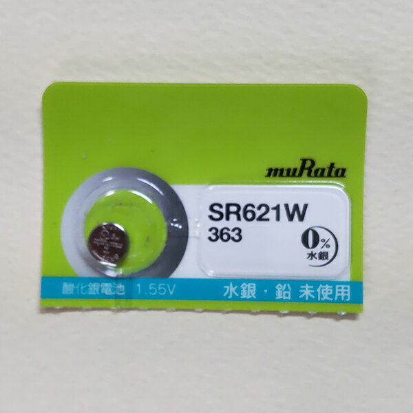ムラタ酸化銀電池「SR621SW」 直径6.8mm 厚み2.1mm ※SR621には「SW」と「W」の2種類があります。 ※「SW」と「W」の違いについてはこちらのページ下部に記載しております。 ムラタ製の腕時計用ボタン電池です。 時計の電池交換にどうぞ。 1個単位と5個単位の販売をしており、同一種類を5個単位のほうがお値段がお得になっております。 ここは1個単位の販売ページです。 5個単位は「こちら」からお買い求め下さい。