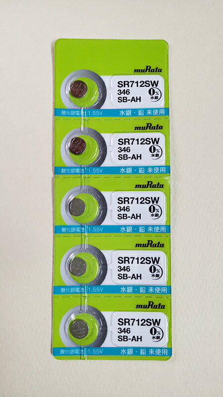 ムラタ酸化銀電池「SR712SW」 直径7.9mm 厚み1.2mm ムラタ製の腕時計用ボタン電池です。 時計の電池交換にどうぞ。 1個単位と5個単位の販売をしており、同一種類を5個単位のほうがお値段がお得になっております。 画像は5個パックのものですが、1個単位の場合ここから切り分けてお送りします。 ここは5個単位の販売ページです。 1個単位は「こちら」からお買い求め下さい。