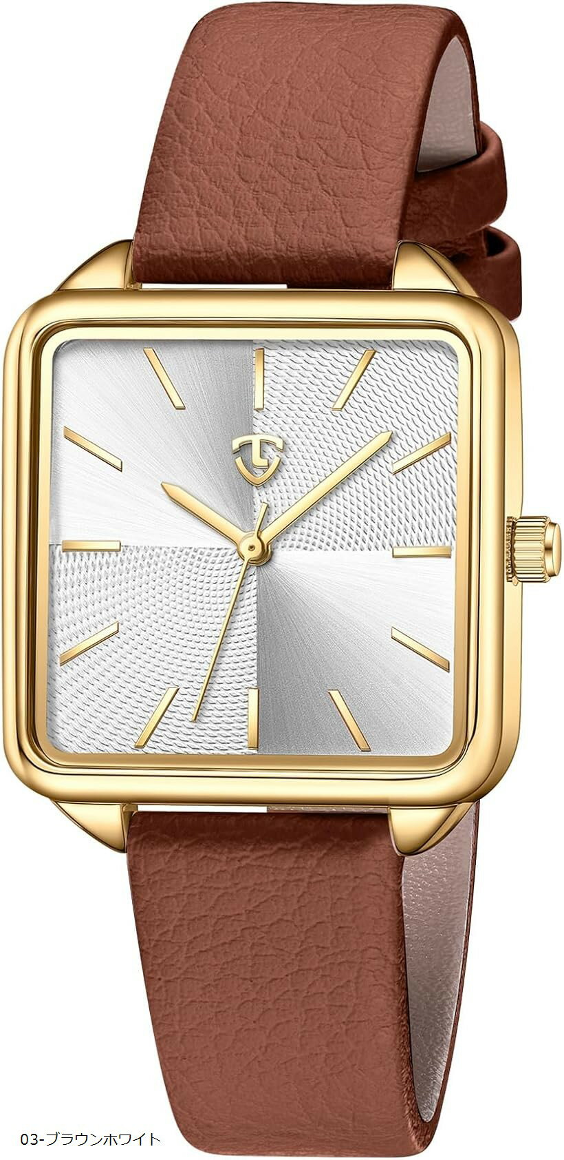 腕時計 レディース アナログ表示 クオーツ うで時計 レザーベルト 細め おしゃれ 防水 方形 シンプル 女性用 人気 カジュアル ファッション ビジネス 仕事 日常通勤 彼女 娘 妻 母 誕生日 お祝い (03-ブラウンホワイト)