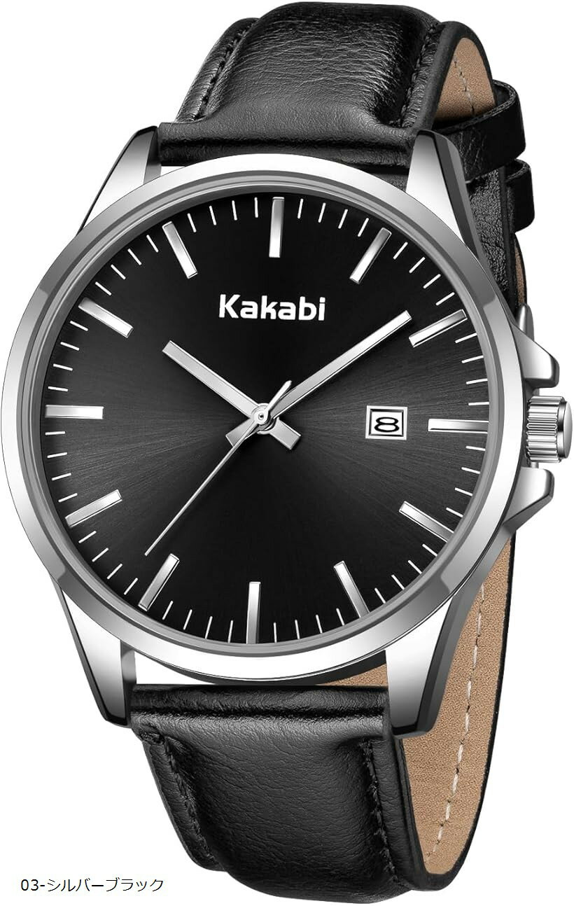腕時計 メンズ シンプル おしゃれ レザー カジュアル 日付表示 防水 アナログ クォーツ時計 ファッション レディース 男女兼用 ビジネス 通勤 宴会 日常 (03-シルバーブラック)