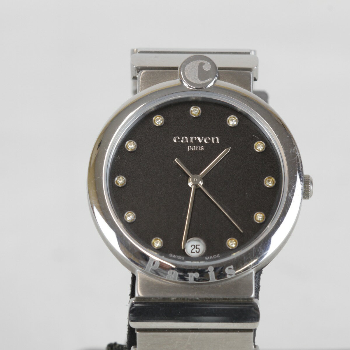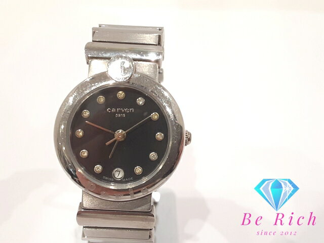 良品『USED』CARVEN【カルヴェン】 腕時計 ステンレススチール ユニセックス クォーツ シルバー 銀色 黒 ブラック スイス製
