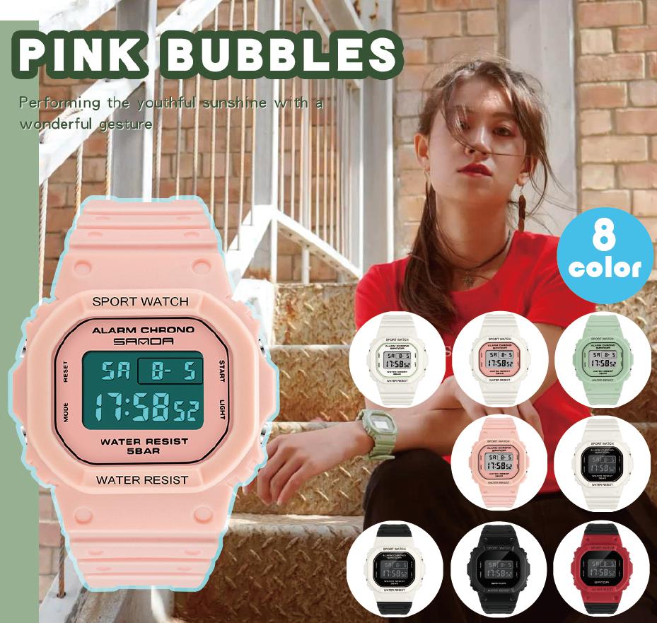 シンプルでスポティーなデザインなので仕事でも日常生活にもお使い頂けます。 男女兼用サイズ、軽量でシンプルなデザインなので 学生さんにもおススメです。 ケース素材:プラスチック ウォッチ窓材タイプ:アクリル バンドタイプ:シリコン 機能:LED、アラーム、ストップウォッチ、ルミナス、自動日付、、防水50M フェイズ(画面):30×25mm ケース厚さ:12.5 mm バンド寸法(適応サイズ:138-221mm バンド幅:25.7 mm 重量:41 g ※腕時計の表裏に保護シールが添付してあり場合によってはシール上に傷や気泡がある場合が ございます。気になるようでしたら剥がしてご利用ください。 ※こちらは本体と操作説明書のみ付属で クリックポスト用の輸送箱にセロテープで固定し 発送させていただきます。 ※複数個ご購入いただいた場合は同梱発送させていただきます。【 箱無しクリックポストでお得】メンズ腕時計 レディース腕時計 デジタル腕時計 軽量 シンプル 見やすい メンズ レディース 男女兼用 スポーツ ジョギング トレーニング カジュアル 中学生 高校生 大学生 30M防水 アラーム機能 シンプルカラーの白・黒やピンクやライトグリーンなど多彩なカラー展開 8色のバリエーション! 一人でも多くの方にお試しいただきたく最初で最後の割引価格です! ・中国発、欧米でも人気のSANDAデジタル時計 ムーブメントは日本製で品質には定評があります。・ストップウォッチ・アラーム機能付き・ バックライト搭載のため、暗闇でも時刻を確認できます。・ベルトサイズ:13.8-22.1cmまで対応可能 重量:41g・日本語説明書付 6