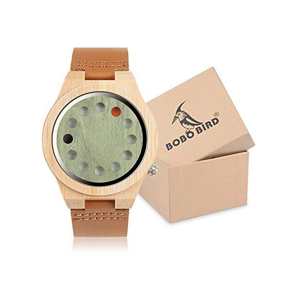 ボボバード BOBO BIRD 竹 腕時計 木製 時計 ウッドウォッチ メンズ 男性用 BOBO Bird Men's Bamboo Wooden Watch with Black Cowhide Leather Strap 12 Holes Timer Design Sports Casual Watches