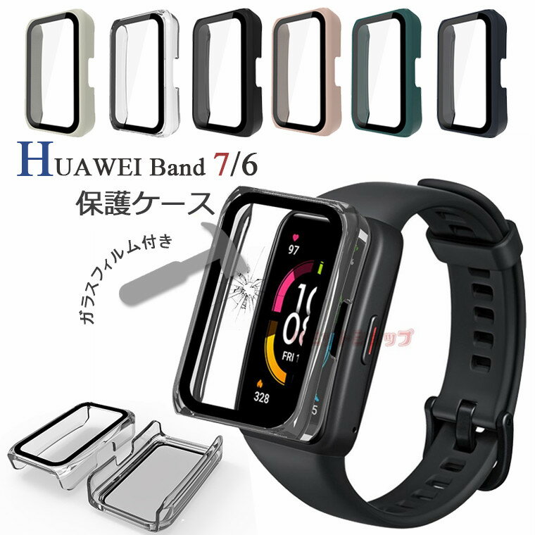 HUAWEI Band 8 ケース 全体保護 HUAWEI Band8 カバー ガラス製 HUAWEI Band 7 画面保護 着用簡単 ファーウェイウォッチ カバー クリア huawe band 7 カバー 高品質 ガラスフィルム PCとガラス 耐衝撃 HUAWEI Band 6 モデル ケース 保護カバー 高級感 軽量 HUAWEI Band 6