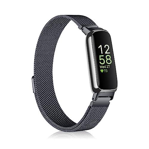 [SeGinn] Fitbit Inspire 3 対応 バンド ファッション 交換バンド 磁気 バックル付き ベルト サイズ調節可能 ステンレス製 交換バンド コンパチブル Fitbit Inspire 3 バンド(黒)