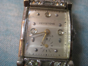 【送料無料】vintage keystone ladies wristwatch, watch as is, clear rhinestones unique