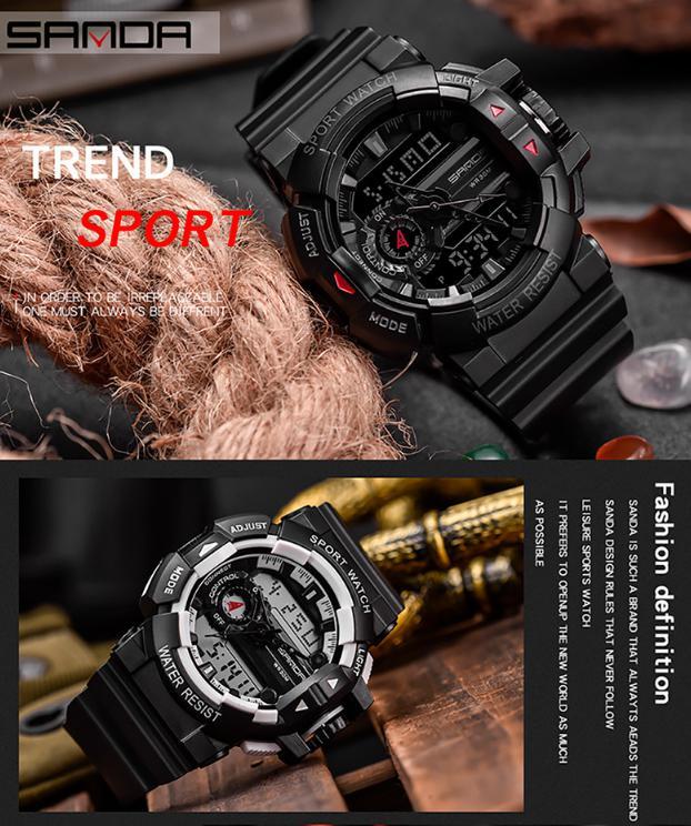 【送料無料】 SANDA598 腕時計 メンズ ミリタリー腕時計 防水 スポーツ LEDバックライト 日付 アラーム ストップウォッチ付 ギフトボックス付 プレゼント 6カラー 日本製高品質ムーブメントを採用。素材・品質・価格にこだわり、最新のファクトリーテクノロジーによってファッション性と付け心地を両立させたモデルです。 日本製ムーブメントで安心!カラーバリエーションは全部で6種! ・中国発、欧米でも人気のSANDAデジアナ時計 ムーブメントは日本製で品質には定評があります。・国内梱包・国内出品!国内出店、弊店舗独自の1年間ムーブメント保証書付で安心です。・ストップウォッチ・アラーム・日付・曜日・ バックライト搭載のため、暗闇でも時刻を確認できます。・30M防水 ダイヤル直径:46mm ケース厚さ:19 mm バンド長さ:270 mm バンド幅:22 mm ネット重量:63g 日本製MAXCELL電池使用 ・日本語説明書 弊社独自1年間保証書 メーカーのスチール+紙のギフトボックスにお入れしてのお届け 中国製こちらの専用スチールケース・紙箱に入れて発送させていただきます。※保証はムーブメント保証となり、外装品には適用されませんのでご了承ください。※発送について基本レターパックプラスでの発送となりますが、在庫状況によっては提携倉庫より宅配便発送となる場合もございますので予めご了承のほどよろしくお願いいたします。 しばらく欠品しておりましたが、全カラー入荷いたしました。 3