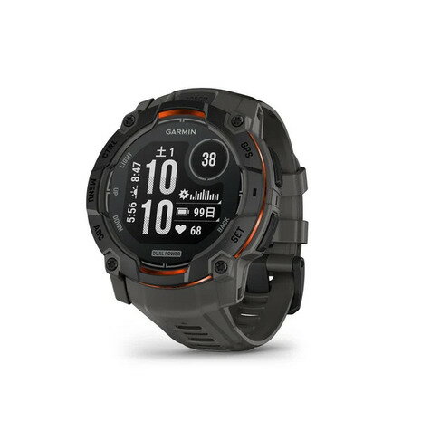 【セット内容】Instinct3DualPower50mmBlack/Charcoal/USB-Cチャージングケーブル(TypeB)※付属のケーブルを使用してのパソコン接続時及び充電時にはUSB-C対応の差込口/コネクタが必要となります。/製品保証書●素材:【ストラップ】シリコン【レンズ】Powerglass【ベゼル】繊維強化ポリマー/アルミ【ケース】繊維強化ポリマー●サイズ:50×50×14.4mm●手首周り適応サイズ:141〜213mm●重量:58g●QuickFitウォッチバンド互換性:(26mm)●ディスプレイサイズ(2ウィンドウデザイン):27×27mm(1.1×1.1インチ)●解像度:176×176ピクセル(アクティブエリア)●稼働時間:【スマートウォッチモード】約40日間+無制限*【バッテリー節約ウォッチモード】約100日間+無制限*【GPSモード】約60時間+200時間**【マルチGNSSモード】約40時間+40時間**【マルチGNSSマルチバンドモード】約34時間+26時間***【バッテリー最長モード】約150時間+無制限**【Expeditionモード】約60日間+無制限**ソーラー充電:50000ルクスの条件下の屋外にて1日あたり3時間の着用を含む終日着用を想定**ソーラー充電:50000ルクスの条件下での使用を想定***ソーラー充電:50000ルクスの条件下での使用を想定SatIQモードでの標準的な使用を想定●充電方式:Garmin独自の充電ケーブルによる有線充電●内蔵メモリ/履歴:128MB●睡眠スコアと洞察●おすすめワークアウト●血中酸素トラッキング●LEDフラッシュライト●GarminPay●Suica●GNSSマルチバンド●トレーニングレディネス●トレーニングステータス●ディスプレイタイプ:太陽光の下でも見やすい、モノクロ半透過メモリインピクセル(MIP)●ソーラー充電●防水等級:10ATM●Instinct(インスティンクト)3はどんな場所でも活躍するタフネスGPSスマートウォッチです。GPSやコンパスを使ってアウトドアを楽しんだり、通知機能や健康管理機能で日常をスマートに過ごすことができます。直感を信じ、自分の道を進むあなたの相棒となります。DualPowerモデルはソーラー充電により超ロングバッテリーを実現したモデルです。●ソーラー充電に対応しスマートウォッチモードでバッテリーが無制限に稼働。●健康モニタリング機能で自分の体をよりよく理解●通知機能で手が離せない時もメッセージを手元で確認。●内蔵LEDライトで暗い場所でも安全に行動●過酷なアウトドア環境にも耐えるタフな設計●GNSSマルチバンドによる高精度な位置測位【商品の購入にあたっての注意事項】※一部商品において弊社カラー表記がメーカーカラー表記と異なる場合がございます。※ブラウザやお使いのモニター環境により、掲載画像と実際の商品の色味が若干異なる場合があります。※掲載の価格・製品のパッケージ・デザイン・仕様について、予告なく変更することがあります。あらかじめご了承ください。ガーミンGARMIN スーパースポーツゼビオ ゼビオ Super Sports XEBIO デジタル ウォッチ 時計 スポーツウォッチ 黒 ブラック スマートウォッチ 多機能 健康管理 運動 ウォーキング ジョギング ランニング サイクリング 自転車 フィットネス ジム トレーニング 筋トレ ダイエット ワークアウト 体力づくり 睡眠 ソーラー バッテリー長持ち 長時間駆動 プレゼント ギフト GPS お出かけ レジャー アウトドア BBQ バーベキュー キャンプ トレッキング fday_pm25 gohoubi xmas2025_ssx_mens_clock