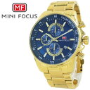 正規品 MINI FOCUS メンズ腕時計 クロノグラフ クォーツ 日付表示 ステンレスバンド かっこいい 腕時計 手表 メンズ ゴールド 金色 高級感 おしゃれ ビジネス カジュアル 誕生日 男性 旦那 彼氏 ギフト 就職祝い クリスマス プレゼント ランキング お祝い